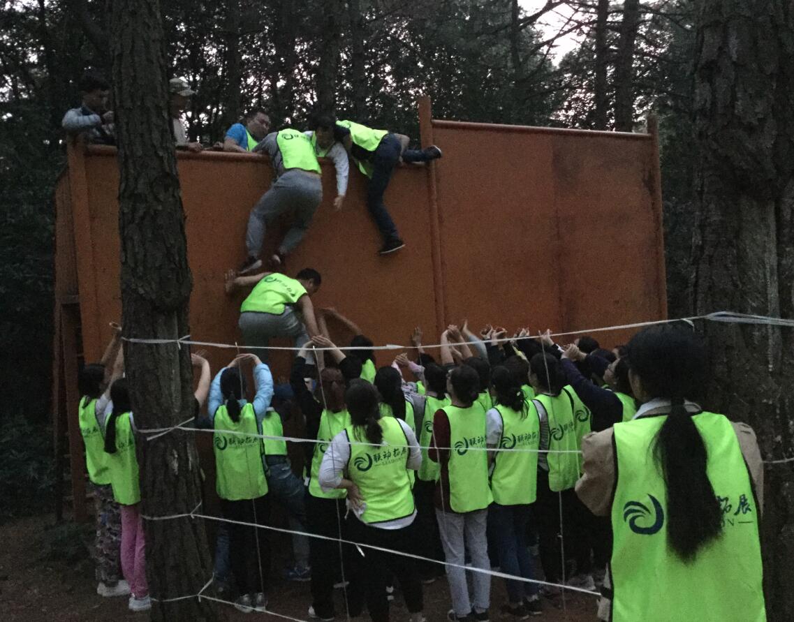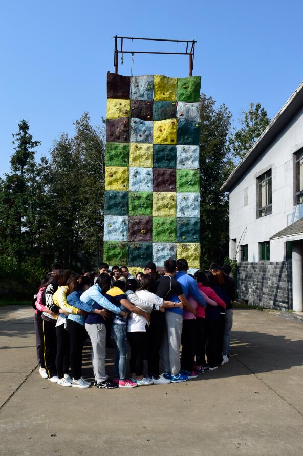 我們在經(jīng)歷了分隊、穿越電網(wǎng)、徒手攀巖、團結(jié)協(xié)作三重關(guān)以及合力吹氣球的各種團隊挑戰(zhàn)之后迎來了畢業(yè)墻,也就是在團隊配合下所有人翻越3.8米高墻。我們整個團隊失敗了2次,從頭再來,一共爬了三次,最終花了11分鐘完成了任務(wù),這個環(huán)節(jié)集合了前面所有的核心,有合作,有信任,有付出。在最后一個人被拉上去的時候,畫面被定格,其中包含了所有人的感動、感激,甚至淚水。