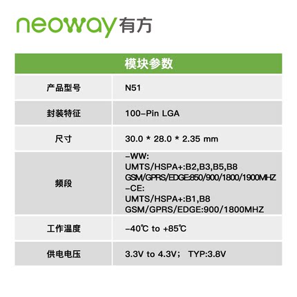 模塊Neoway 有方科技 N51 UMTS/GSM/WCDMA 3G 無線通信模塊 模組